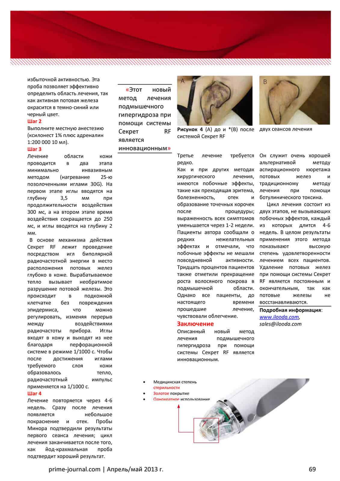 Описанный новый метод лечения подмышечного гипергидроза при помощи системы Секрет RF является инновационным.