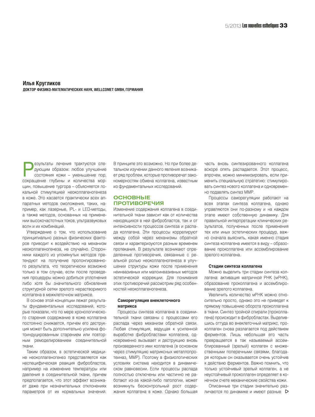 6. Kruglikov IL. Neocollagenesis in noninvasive Aesthetic treatments. J Cosm Dermat Sci, 2012, Аppl 2(4).